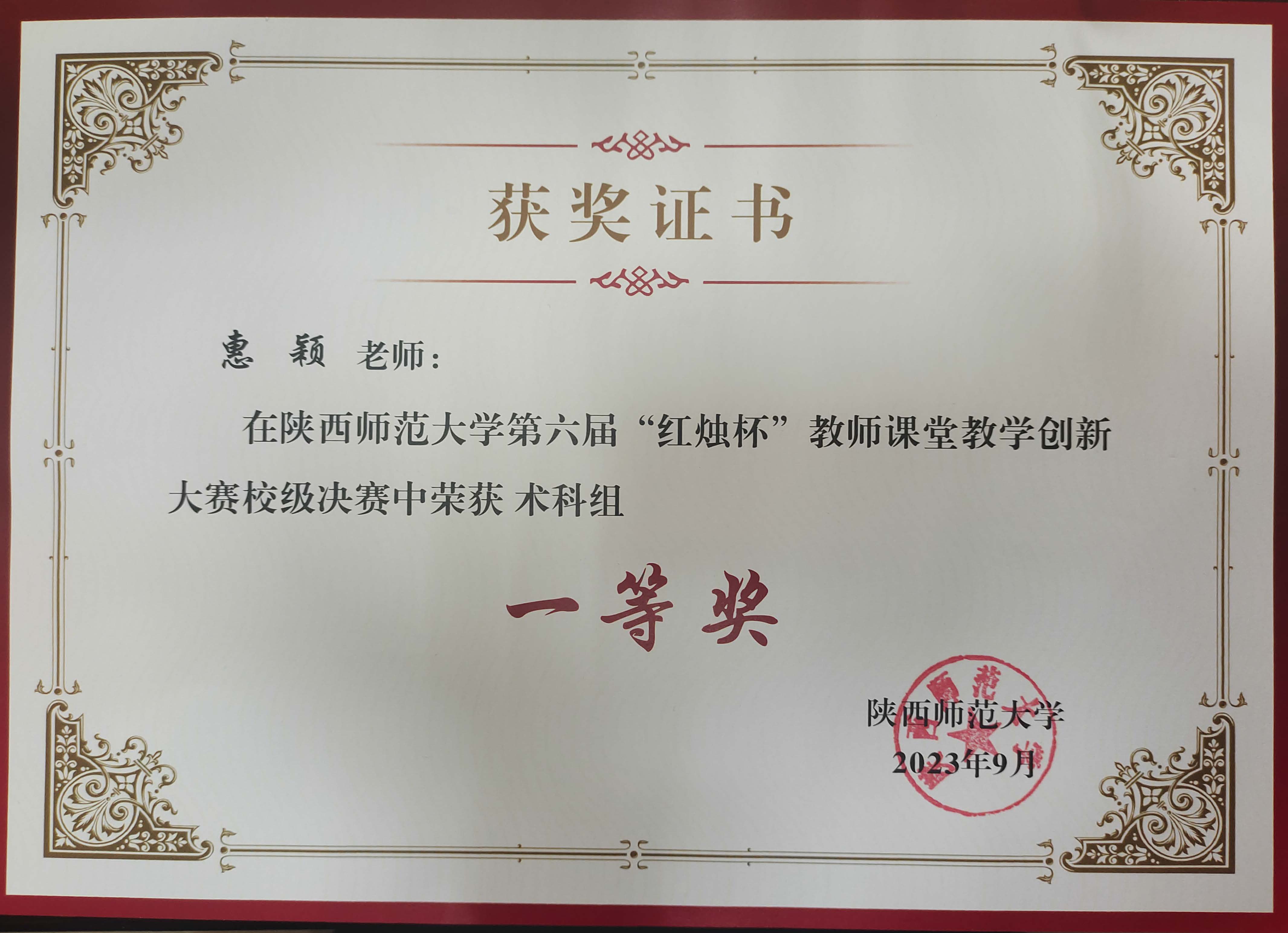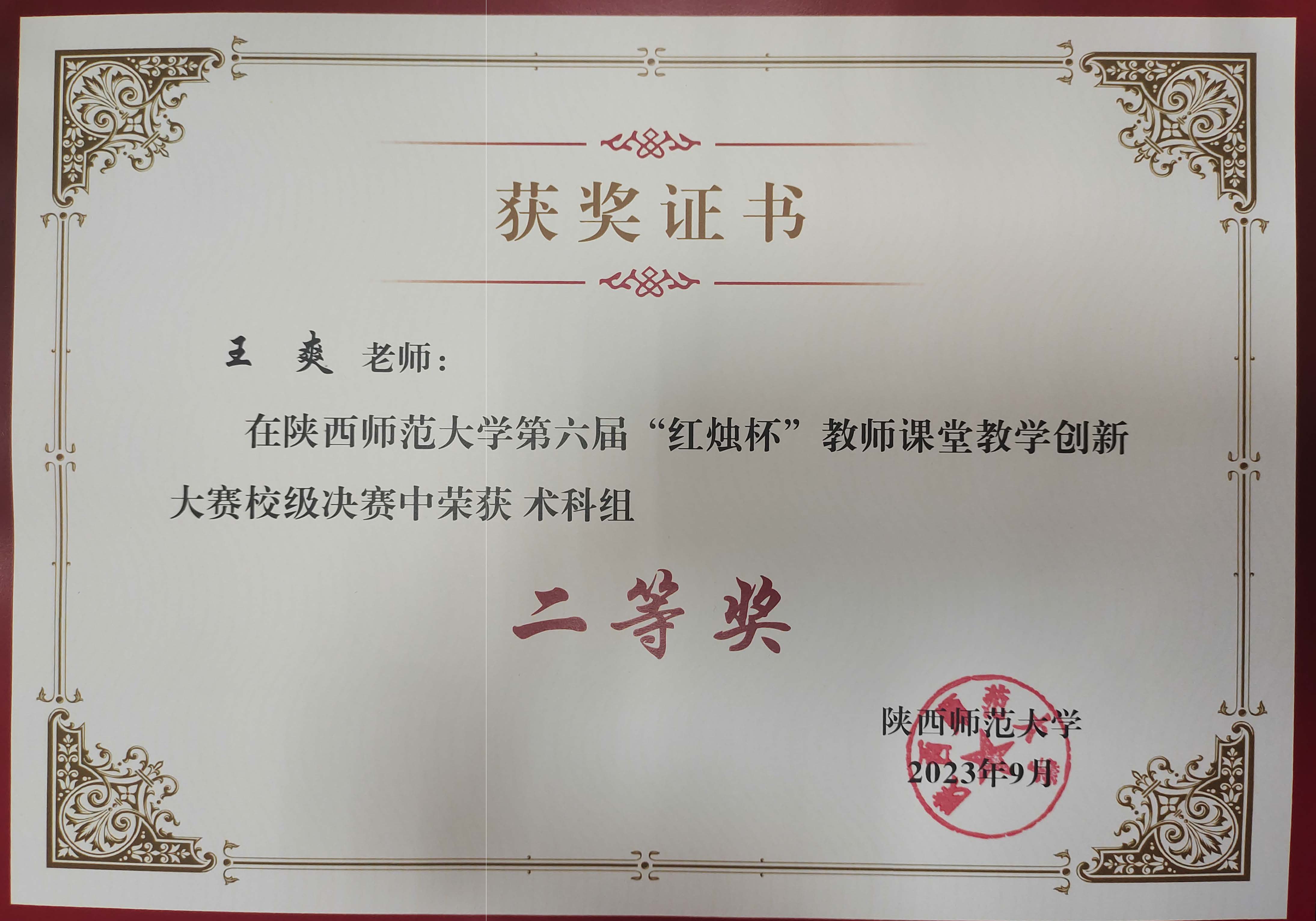 9月23日,正规英国365网址第六届“红烛杯”教师课堂教学创新大赛校级决赛在长安校区落下帷幕,我院教师惠颖获术科组一等奖、王爽获术科组二等奖,学院获优秀组织奖。
