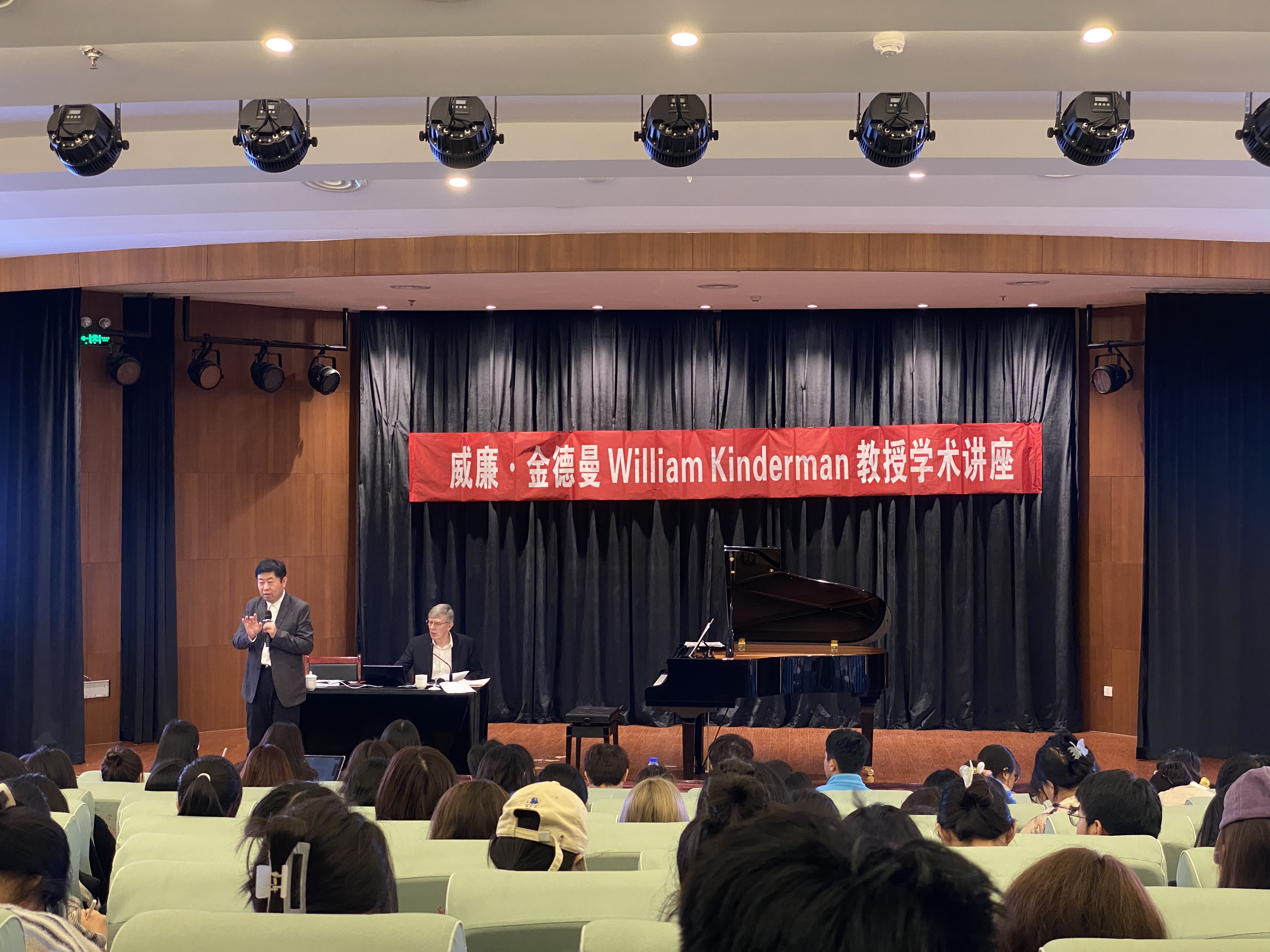 9月28日,美国著名音乐学家威廉·金德曼教授在六艺楼报告厅为我院师生作了两场贝多芬专题讲座。讲座由中央365英国上市网音乐学系刘小龙教授担任翻译,我院钢琴系主任那皓涵教授任主持人。