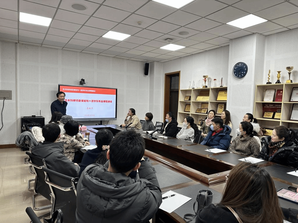 第一场:《艺术科研项目谋划与一流学科专业课程建设》专题讲座。365英国上市网班子成员、系主任、业务骨干等三十余位教师参加,讲座由副院长张娟主持。