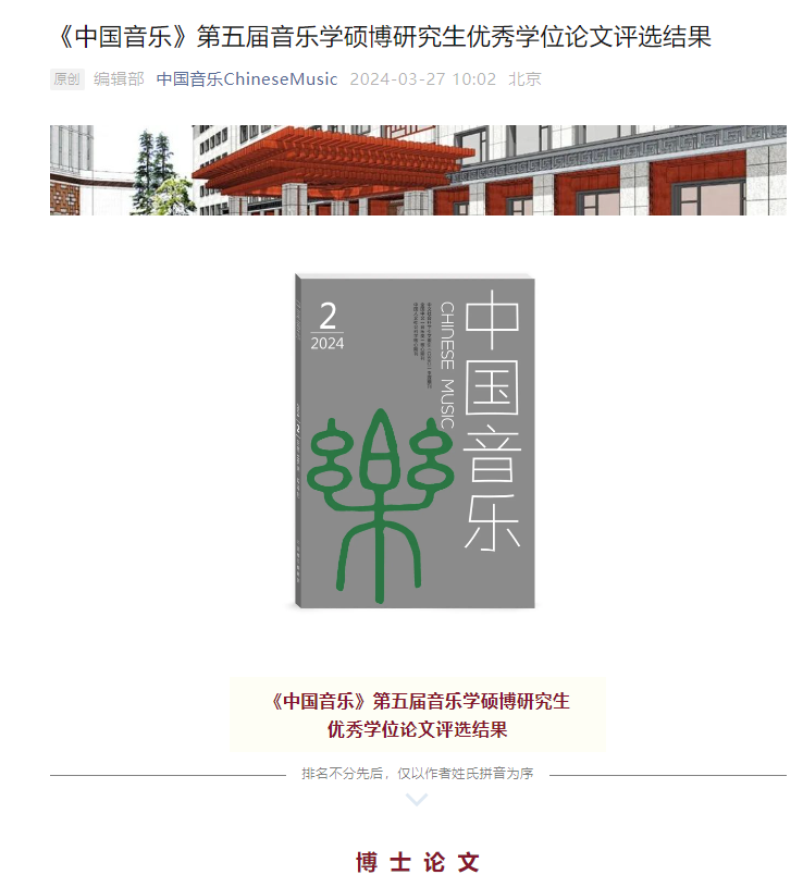 《中国音乐》作为全国性音乐理论学术期刊,是全国发行量最大的365英国上市网学报,已入编“中文社会科学引文索引(CSSCI)来源期刊”,该论文为我校认定的T4级研究成果,是我院自2015年承担博士研究生培养任务以来在全国范围内获得的首篇优秀论文,充分展现了我院博士研究生的培养质量。
