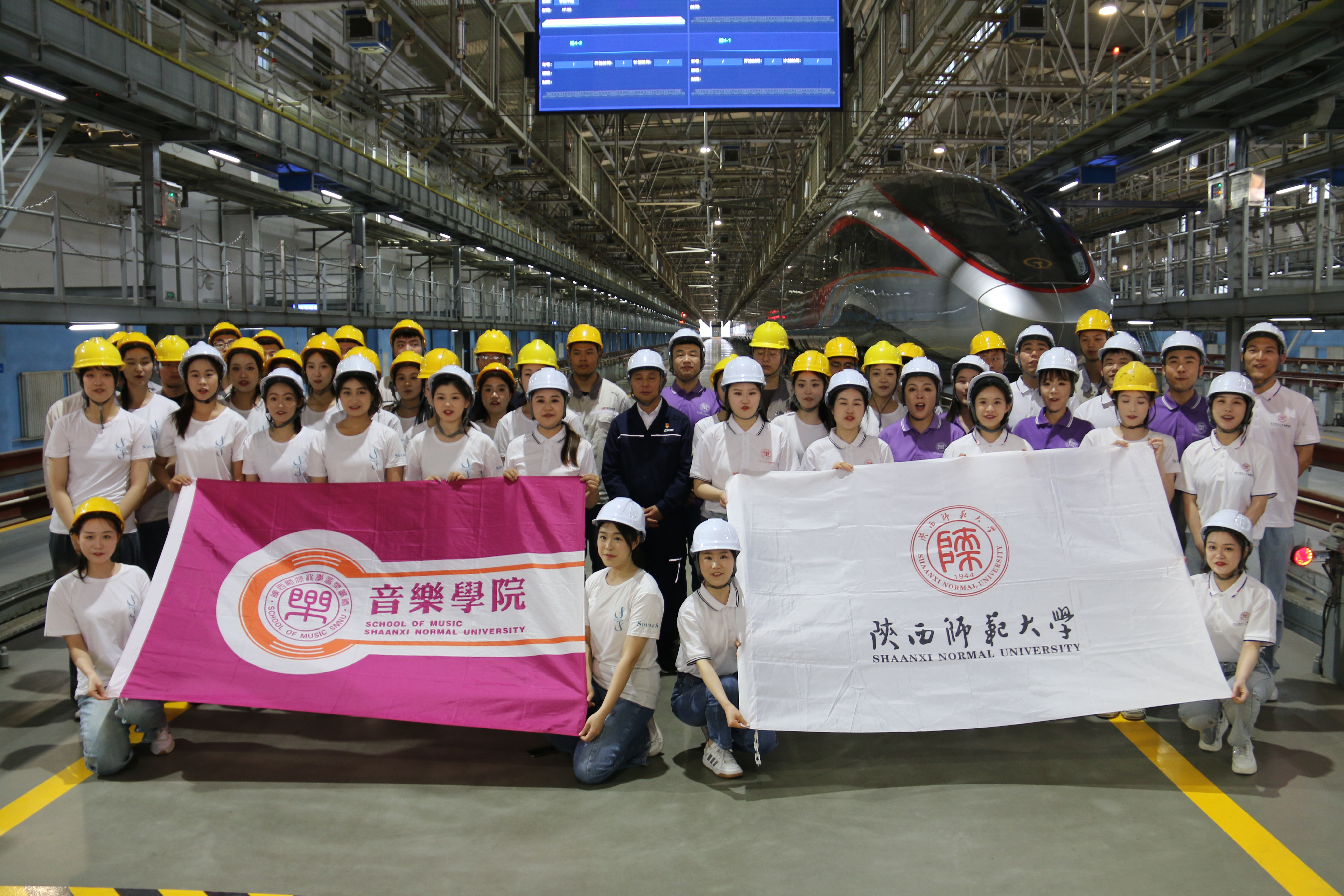 首先来到西安东站施工建设现场,工作人员向师生介绍工程所需材料,并进行了灭火、急救等现场实训。随后来到北客站高铁入库检修站,我院师生用专业与热情,为工人师傅们带来一场歌舞盛宴。青年教师郝亮亮演唱《师傅》,表达我院师生对铁路人的敬佩、感激之情。雷倩老师一曲《天路》,抒发一代又一代劳动者对未来的美好期盼,将现场气氛推向高潮。