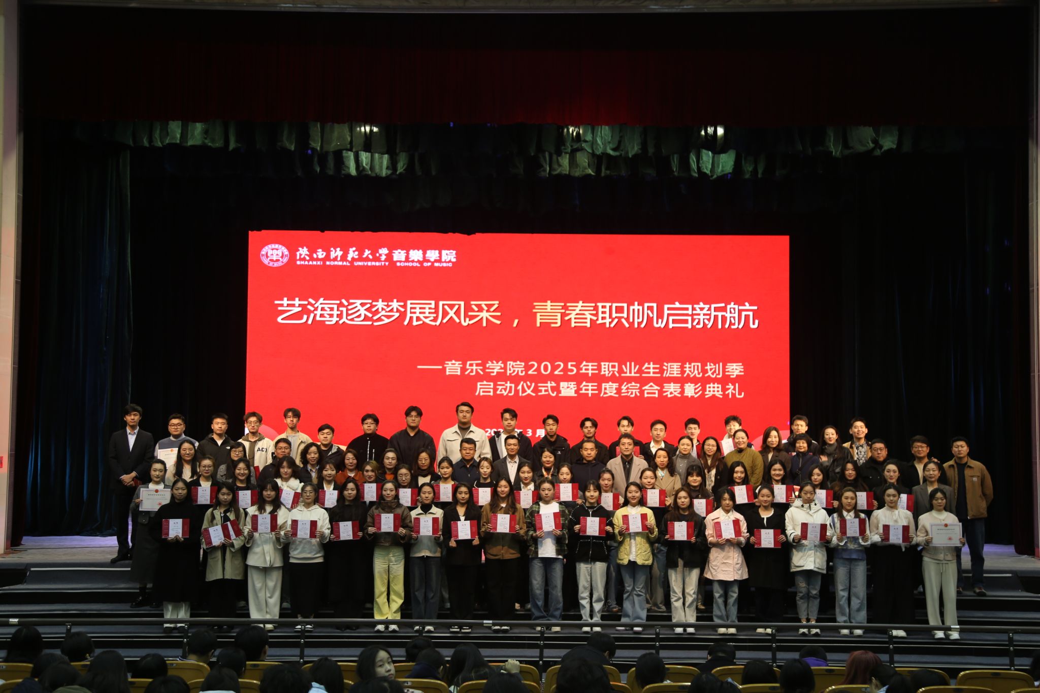 3月16日晚,我院“艺海逐梦展风采 青春职帆启新航”2025年职业生涯规划季启动仪式暨年度综合表彰典礼在终南音乐厅举行。学院党委书记范玮熠,党委副书记、院长黄键,党委副书记、纪委书记宋娜,副院长张娟、张新梅、韩晓勇、郭元,各系主任、班主任、教师代表、各年级辅导员以及全体学生参加此次大会。大会由研究生辅导员张仪、2022级本科生刘皓文主持。