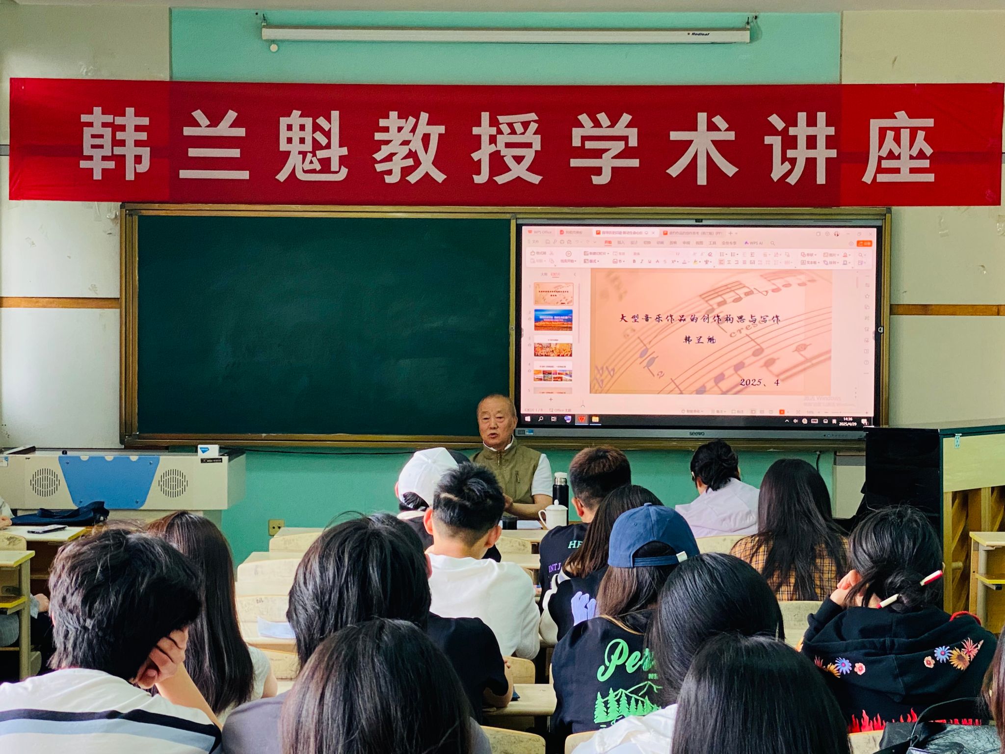 4月29日下午,西安365英国上市网作曲系韩兰魁教授应邀在六艺楼616教室为我院师生带来学术讲座,主题为《大型音乐作品的创作构思与写作》。讲座由我院张智军副教授主持。