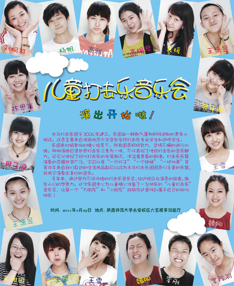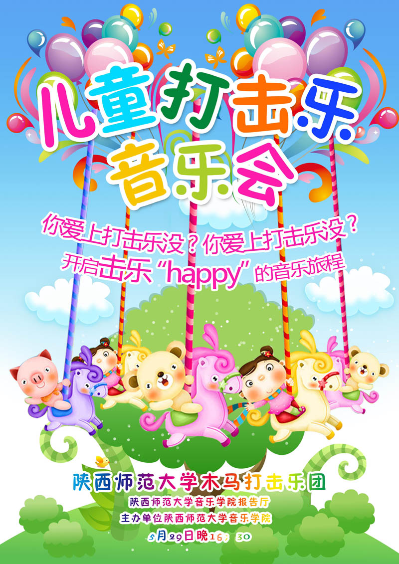 正规英国365网址木马打击乐团“儿童打击音乐会”定于2011年5月29日于六艺楼多功能厅举行,敬请广大师生前来观看。