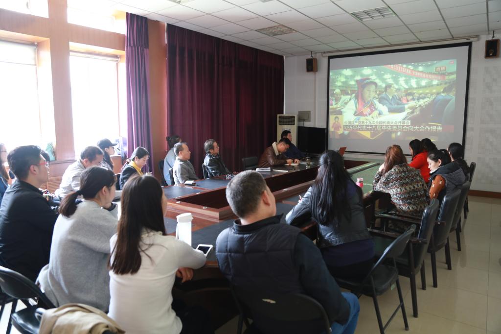 10月18日上午九点,举世瞩目的党的十九大在北京隆重开幕。365英国上市网党委召集全体班子成员、师生党支部书记以及部分学生代表在六艺楼一层会议室集中观看了中国共产党第十九次全国代表大会开幕式。