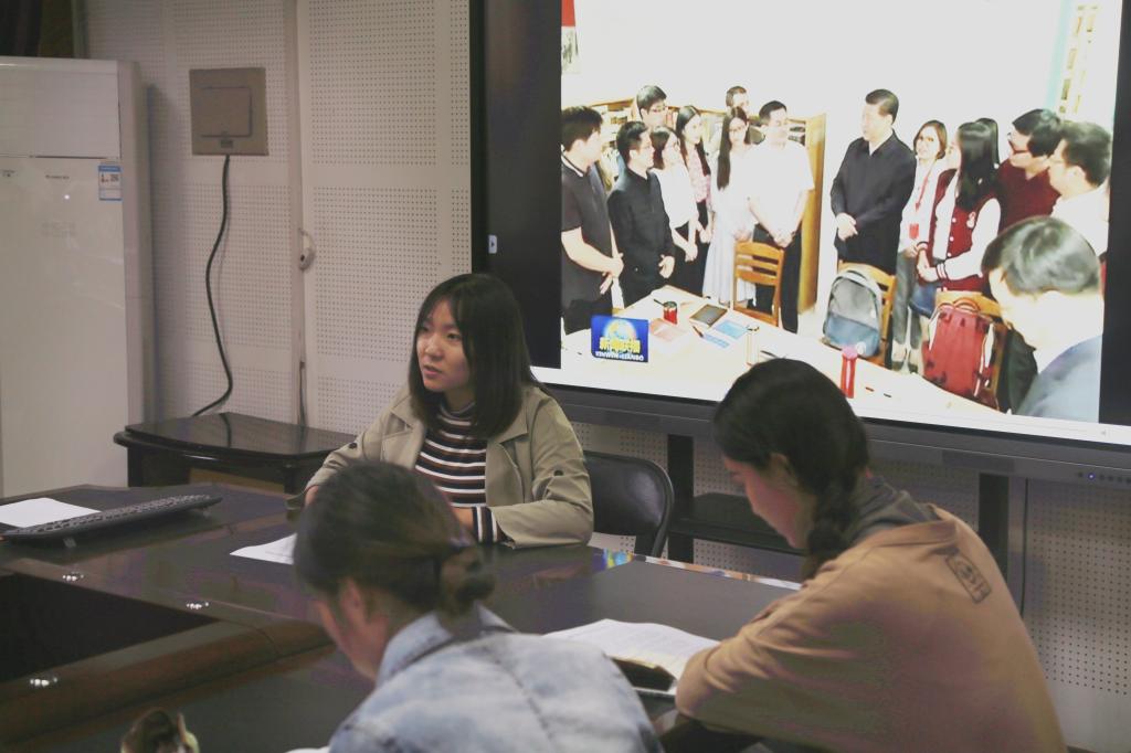 会上,与会人员集体观看了5月2日新闻联播关于习近平总书记赴北京大学走访调研的视频报道,传达学习习近平总书记在座谈会上的重要讲话精神。随后,辅导员老师与部分学生代表分表围绕讲话精神展开热议。王靖雯老师表示,总书记的讲话对高校建设和高校教师提出了新要求,作为一名思想政治教育工作者,深感自己肩负的责任和使命,我们应继续努力钻研,用心耕耘,不断提高自己的政治素质、业务能力和育人水平。2016级舞蹈学(非师范)学生冯忠桂说,习近平总书记在讲话中指出,“广大青年既是追梦者,也是圆梦人。”作为当代大学生,我们要严格要求自己,提高自身综合素质,紧跟时代步伐,坚定理想信念,不忘初心,砥砺前进。2016级音乐学学生李想说,习近平总书记的讲话激励人心,使我们备受鼓舞。作为一名师范生,我要牢记新时代赋予青年学生的使命,将自己的理想和中国梦紧密结合,努力学习,坚持知行合一、脚踏实地,做新时代的有为青年。