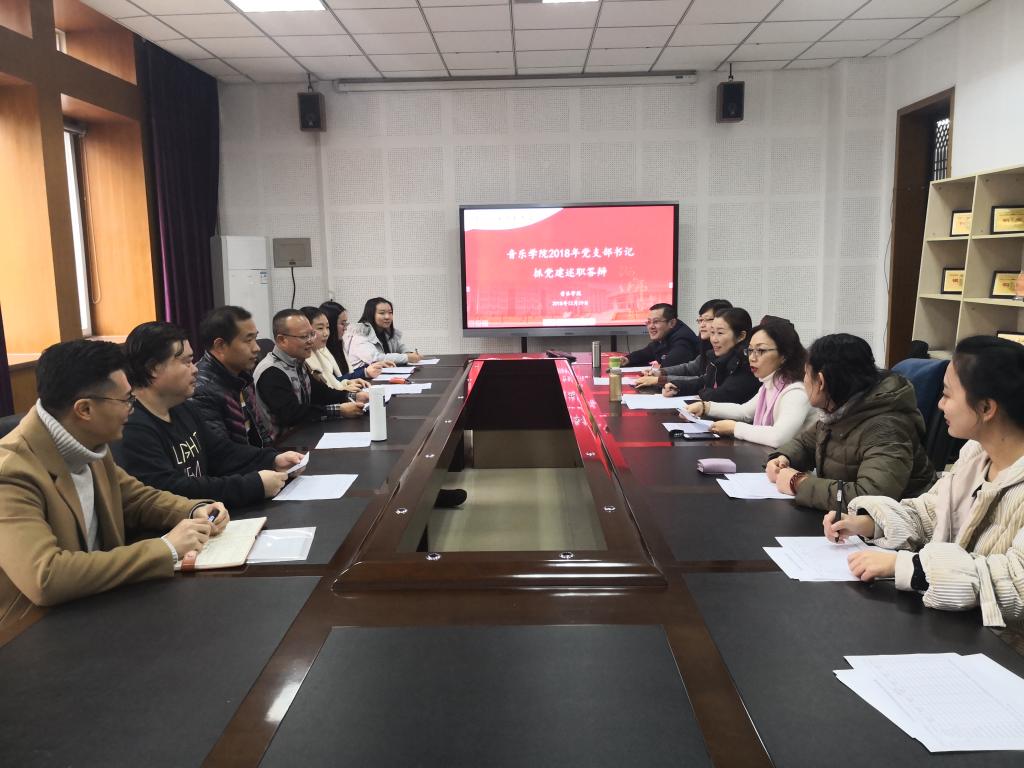 答辩会上,行政党支部、器乐系党支部、作曲与音乐学系党支部、钢琴系党支部、舞蹈系党支部、本科生2个党支部、研究生6个党支部依次进行了汇报答辩。围绕主要工作内容、存在的突出问题和主要原因、改进措施和努力方向三方面对支部书记抓党建述职报告进行汇报。