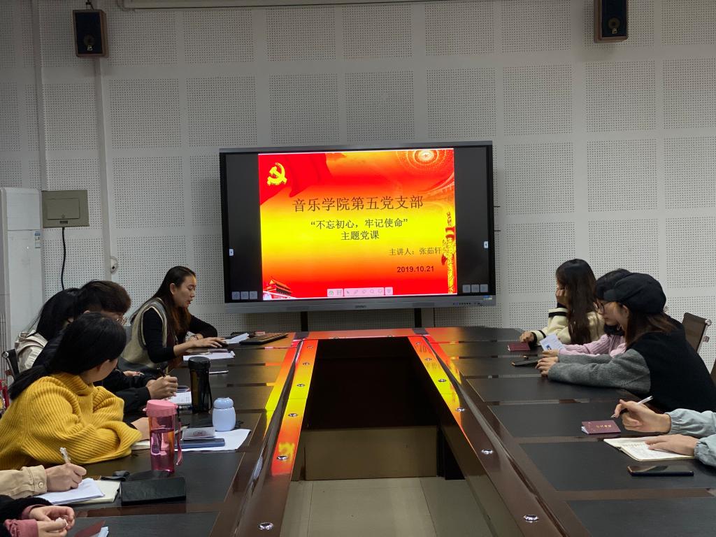 2019年10月21日,365英国上市网研究生第五党支部在六艺楼一层会议室举办“不忘初心,牢记使命学习习近平总书记系列重要讲话”主题党课, 第五党支部全体党员同志参加课程学习,党课由研究生第五党支部书记张茹轩主持。