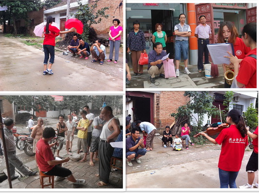 中共中央十七届六中全会提出要进一步推动社会主义文化大发展大繁荣,尤其是针对近年来城乡之间文化差距逐渐扩大的现状,中共中央指出要加强农村文化惠民工程和公共文化服务体系的建设。为了深入了解咸阳地区农村文化惠民工程与公共文化服务体系建设情况,促进咸阳农村地区文化的发展,进一步缩小城乡之间文化差距,按校团委有关文件精神和工作部署,2012年7月7日—12日,我院“文艺走基层,本硕共践行”暑期社会实践团一行14人奔赴咸阳市礼泉县阡东镇阡东村开展调研和演出活动。实践团由我院团委书记范玮熠、2012级学生辅导员马凯2位带队老师及2名研究生、10名本科生组成。