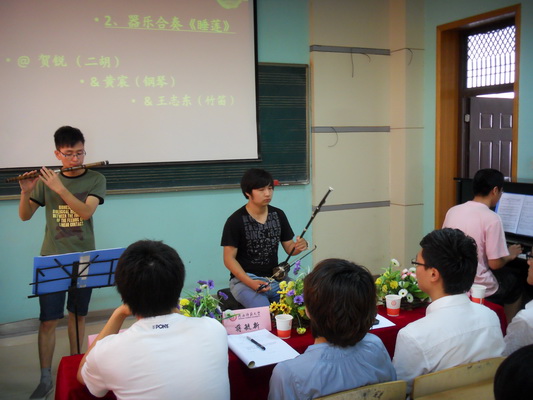 活动由全体师生合唱团歌《光荣啊,共青团》拉开了序幕。随后,由音乐学2班王君同学为大家讲述了共青团由成立至今的发展历程。伴着对共青团发展历程的回顾,精彩的团知识竞答拉开了帷幕。音乐学专业三个班的同学们积极踊跃地举手回答问题,落后的班级还进行了节目表演,逐步将团日活动推向了高潮。为了体现当代青年大学生为祖国未来奋斗的决心,同学们还通过钢琴独奏、器乐合奏以及独特的讲课经验交流等方式,向老师和同学们展示了扎实的专业能力和讲课技巧,获得了师生的一致称赞。