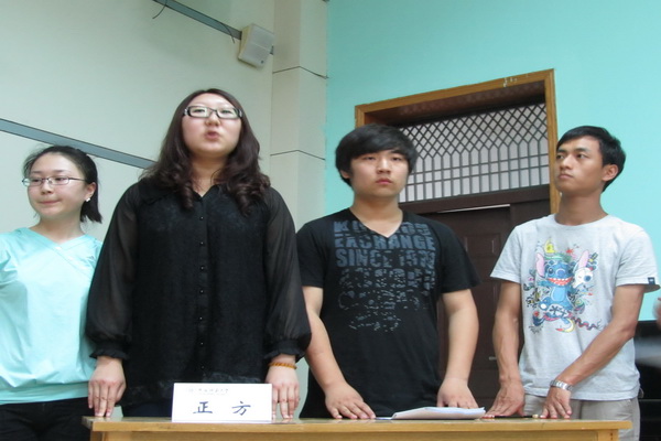 整个辩论赛的气氛热烈而活泼,紧张而不失条理。双方面对对方辩友的猛烈攻击镇定自若,凭借快速的反应和有力的言辞化险为夷。正反双方时而慷慨激昂,时而咄咄逼人,辩手们的妙语连珠、能言善辩令人赞叹。现场的氛围也随着自由辩论顿时达到高潮,掌声雷动。