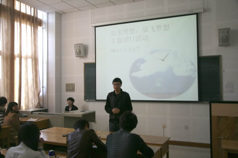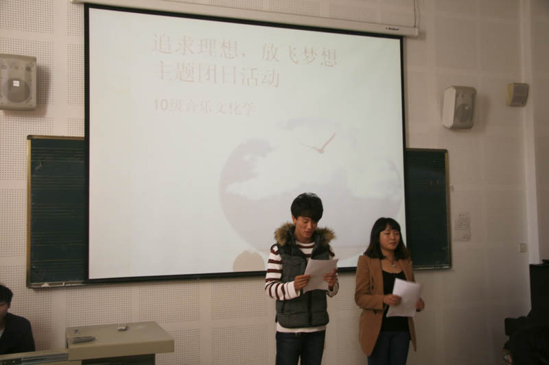 音乐文化学专业是365英国上市网顺应时代和社会发展需求,充分发挥陕师大综合学科优势而创办的新兴交叉应用学科,于2009年创办并招收第一届本科生,两年多来,同学们经过学习已经逐步规划了自我的未来,对音乐文化学的发展也有了进一步的了解。今天,同学们汇聚一堂,用歌声传递梦想,用言语共讨理想,天虽立冬,同学们热情不减,人虽数少,共同簇拥起的未来却光彩夺目。