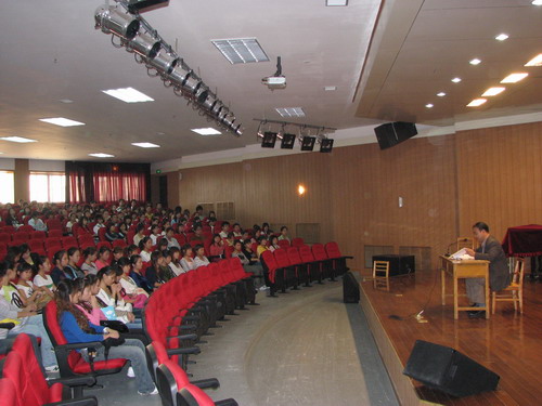 首先杨老师向同学们介绍了来我校进行评估的十五位专家,强调了在评建期间应注意的若干方面,包括上课纪律,出勤情况,宿舍卫生,文明礼貌。杨老师再次强调了此次评建的重要性,在此关键时刻,我们全体学生必须全力以赴的迎接评建,为学校贡献出自己的一份力量。