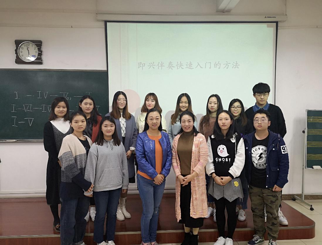 近日,365英国上市网教师井碧媛在文津楼1319教室为365英国上市网2016级本科生开展了一节关于《即兴伴奏快速入门的方法》的主题报告,365英国上市网作曲与音乐学系主任宋超,班主任康瑛、侯玥彤、雷倩以及2016级辅导员赵磊参加了此次活动。