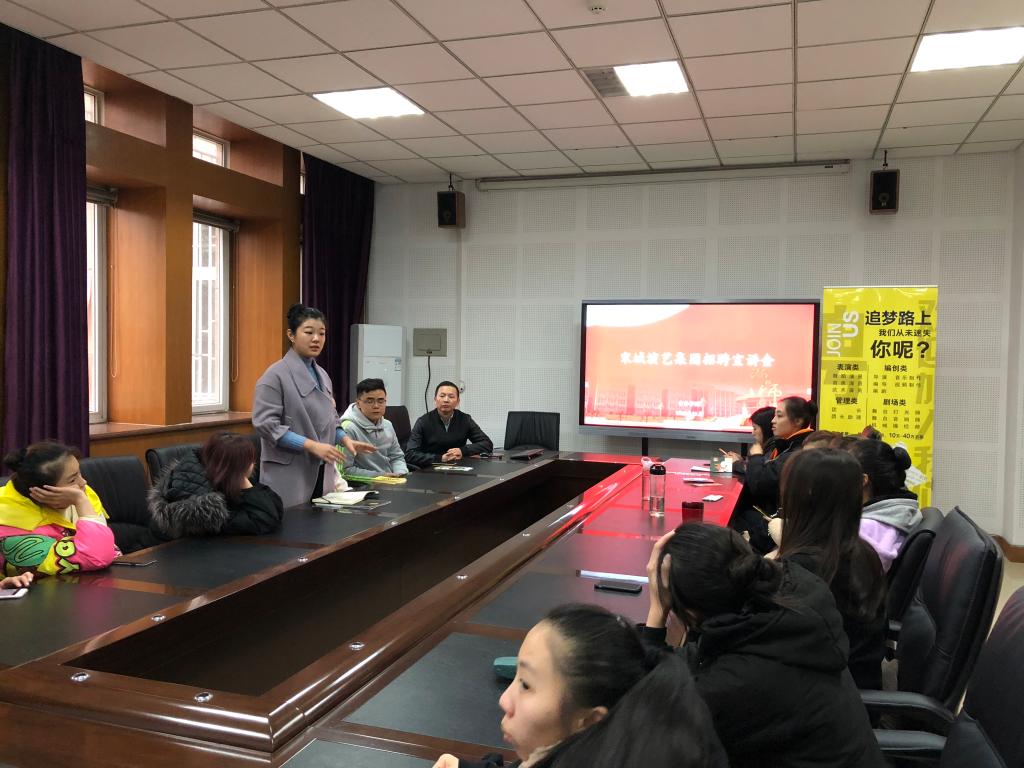 会上,张思凡向招聘单位详细介绍了2019届舞蹈学(非师范)专业本科毕业生的总体情况,并对该专业的培养计划和专业特点进行了说明。随后,陈扬渲从地理位置、公司规模、未来发展、文化特色、机构设置等方面介绍了公司的具体情况;蔡帅帅从福利待遇、招聘对象、专业类别等方面展示了公司的优越条件,并就应聘要求和流程等情况做了进一步的补充说明;唐依婷结合自身的工作经历分享了入职后的所感所想,以及公司内部的工作氛围和机制。