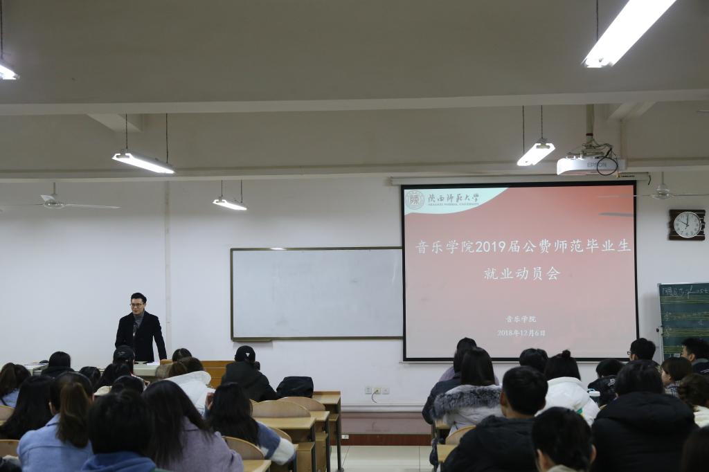 会上范玮熠首先在动员讲话中对实习归来的同学表示欢迎,对公费师范生圆满完成为期三个月的实习工作表示祝贺。他在讲话中强调,同学们在求职过程中必须端正思想,积极行动,准确定位,切忌盲目乐观或悲观,树立正确的就业观,及时关注就业信息。他还鼓励同学们积极参加学校承办的陕西高校(师范类)2019届毕业生就业双选会暨正规英国365网址2019届毕业生冬季大型招聘会,并介绍了招聘会的基本流程和注意事项,叮嘱同学们悉心打磨简历,了解用人单位,注意仪容仪表,做好应聘准备,珍惜和把握每一次应聘机会。随后,他还提醒已经签约的同学及时上传就业信息,保证就业工作有序进行。最后,他祝愿大家在接下来的大学生活中过得健康、平安、快乐,争取早日找到心仪的就业单位,顺利走上工作岗位。