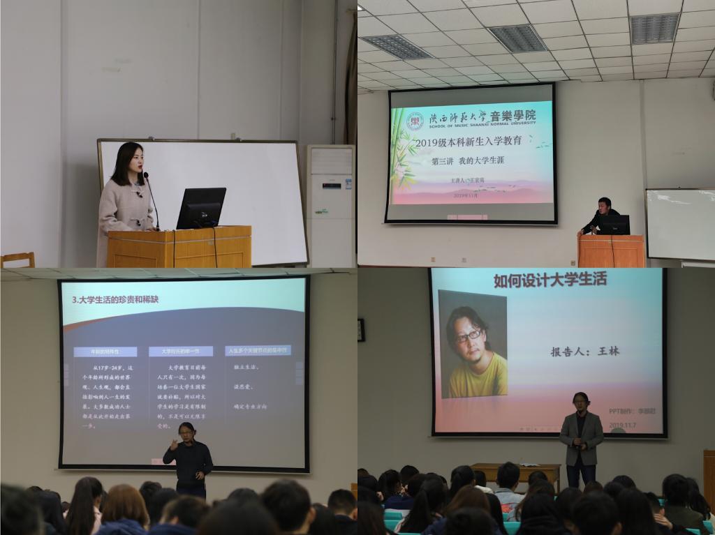 为进一步推动新生学业职业生涯规划教育,帮助引导学生真正做到“把学习作为首要任务,作为一种责任、一种精神追求、一种生活方式”,音乐学院于2019年11月10日在长安校区文津楼为213名大一学生继续开展专业思想教育第三讲,引导学生明确专业认知、提高专业素养,树立远大理想,本次报告会邀请到作曲与音乐学系主任王林和声乐系青年代表教师王宏亮为新生进行专业思想教育讲座,本次讲座由2019本科生辅导员薛凡凡主持。