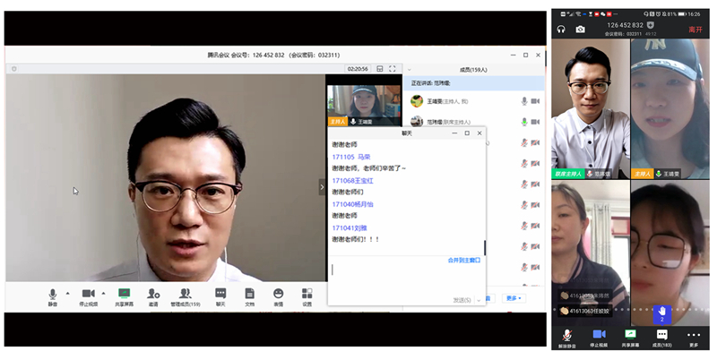 范玮熠首先通报了学院目前的就业情况,分析了当前就业形势的严峻性,强调了每个阶段就业黄金期的重要意义,并针对学工干部前期摸排梳理后形成的七种类别就业学生进行了分类指导,提出了相应的可行性分析和实操性建议,要求同学们积极尝试,把握机会,精准发力。他还嘱咐同学们要牢固树立“先就业,后择业”的科学就业观,合理定位,切勿好高骛远,要脚踏实地的迈出就业的第一步。针对当前疫情影响下无法开学的现实情况,他表示学院对毕业生就业工作予以了高度重视,并尽全力帮助同学们解决困难,认真做好服务工作,做到学业就业两不误,并强调了现阶段线上应聘过程中的网络信息安全问题,要求同学们务必做好信息鉴别工作,谨防落入诈骗陷阱。