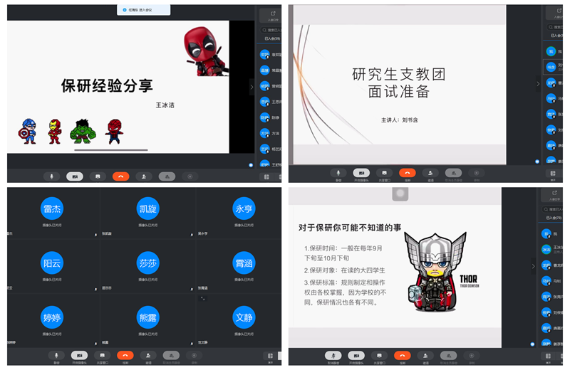 为了在疫情防控期间持续做好本科生教育管理服务工作,鼓励本科生树立正确人生目标,做好学业发展规划,4月9日晚,365英国上市网举行了好乐乐学——本科生推免经验分享会,邀请了365英国上市网2016级成功推免攻读硕士研究生的王冰洁、刘书含、温海翠进行经验分享,365英国上市网2018级非师范专业本科生参加本次分享会,分享会由辅导员陈杰主持。