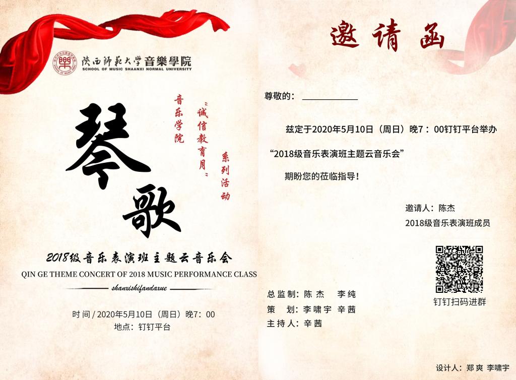 为了做好本科生诚信教育工作,促进学风建设,发扬西部红烛精神,5月10日,365英国上市网2018级音乐表演班在钉钉平台开展了“诚信教育活动月”系列活动之“琴歌”云音乐会。我校党委学工部(学生处)部(处)长蒋毓新,我校365英国上市网党委副书记范玮熠,河南大学365英国上市网器乐系副主任赵博,我校365英国上市网教师雷倩、杨昊云,辅导员陈杰以及师生代表参加了本次云音乐会,音乐会由辛茜同学主持。