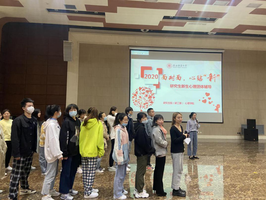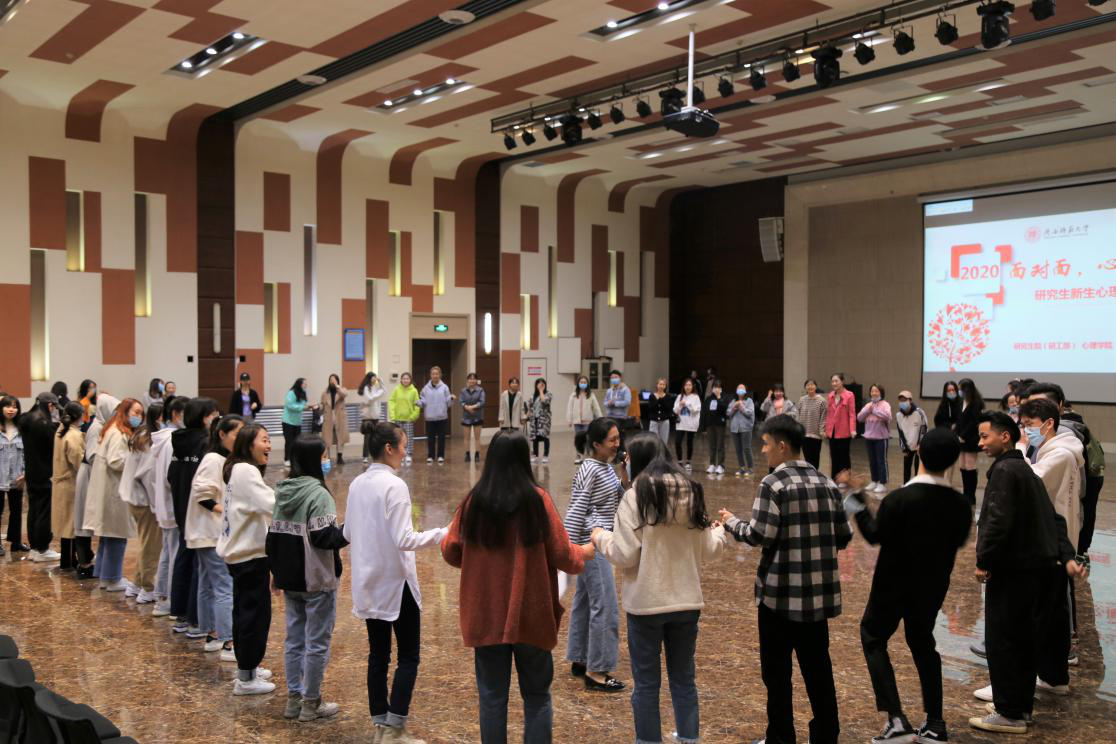 为进一步做好研究生心理健康教育工作,培养积极向上、理性和平的健康心态,帮助同学们尽快适应研究生学习生活,2020年10月5日,我院在新勇学生活动中心二层多功能厅举行研究生新生首次心理团体辅导。此次活动以“面对面,心贴新—提高团队凝聚力”为主题,心理学院辅导老师和我院2020级全体研究生参加了此次活动。