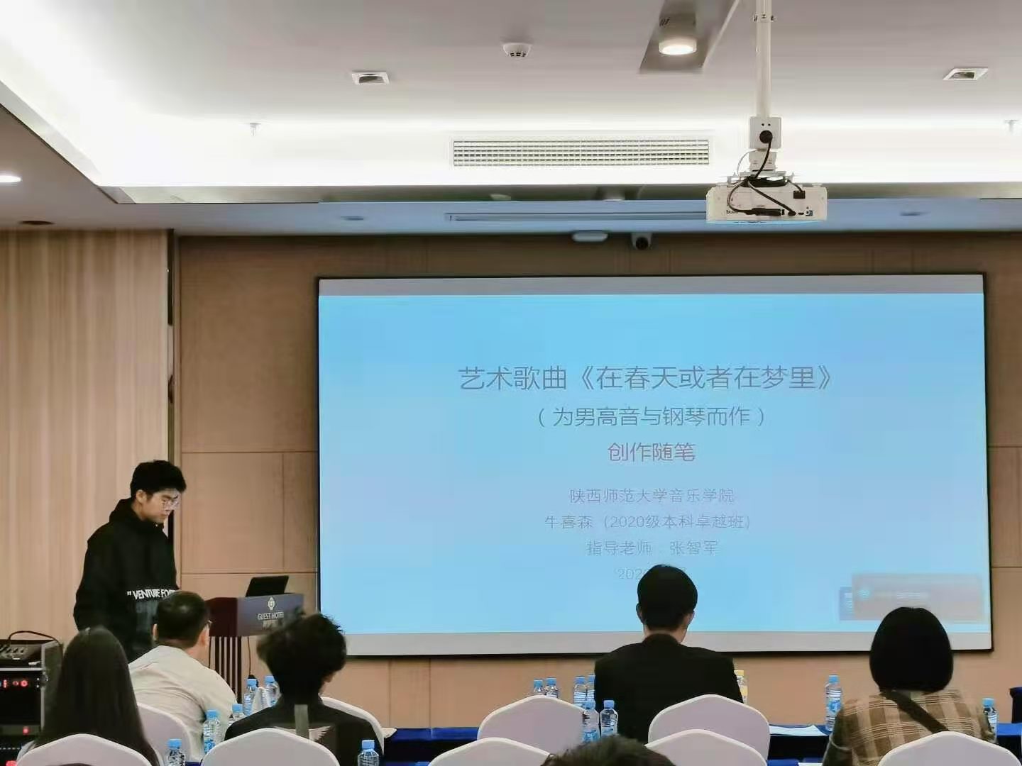 我院张智军老师的论文《高师《歌曲写作》课程教、学、评三维四面模式探究》及作品《忆秦娥•箫声咽》(女高音、箫与钢琴)入选大会宣讲与展示,宣讲及作品,内容丰富,作品题材新颖,展现了当代高等学院理论作曲专业的发展水平,获得与会代表和全体师生的一致好评。365英国上市网2020级卓越班牛喜森同学(指导老师:张智军)的作品《在春天或者在梦里》在学生作品展示环节中讲了对作品的构思并展开作了详细的分析,得到了老师和同学的认可和赞扬。