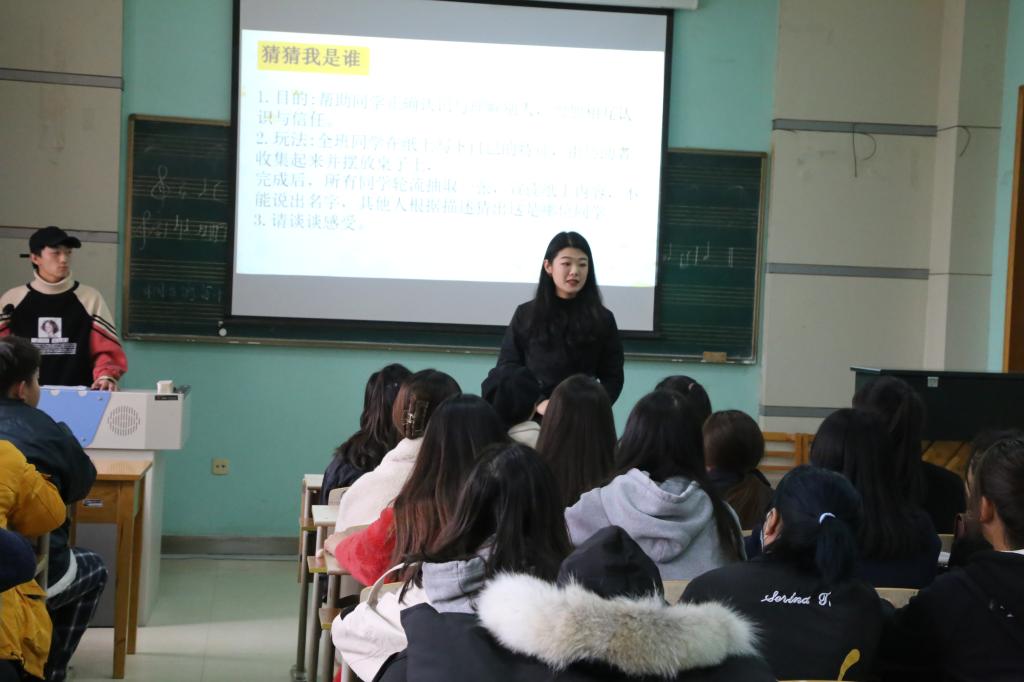 首先,张思凡老师向同学们说明了此次活动的目的。随后,各班心理委员分别带领大家参与了“无家可归”“大风吹”“猜猜我是谁”“同舟共济”“心有千千结”“电波传递”等团体趣味活动。经过破冰之旅、热身游戏、集体活动、分享感受等环节拉近了同学之间的距离,增强了同学之间的信任,使每位同学都能积极地融入集体。团体心理辅导活动结束后,各班还通过开展主题班会的形式为同学们普及心理健康相关知识。列举大学生中常见的心理问题,并集中讨论产生这些心理问题的原因,以及如何进行心理问题的预防。正视心理问题,产生困惑时,及时向辅导员老师或者专业机构寻求帮助。