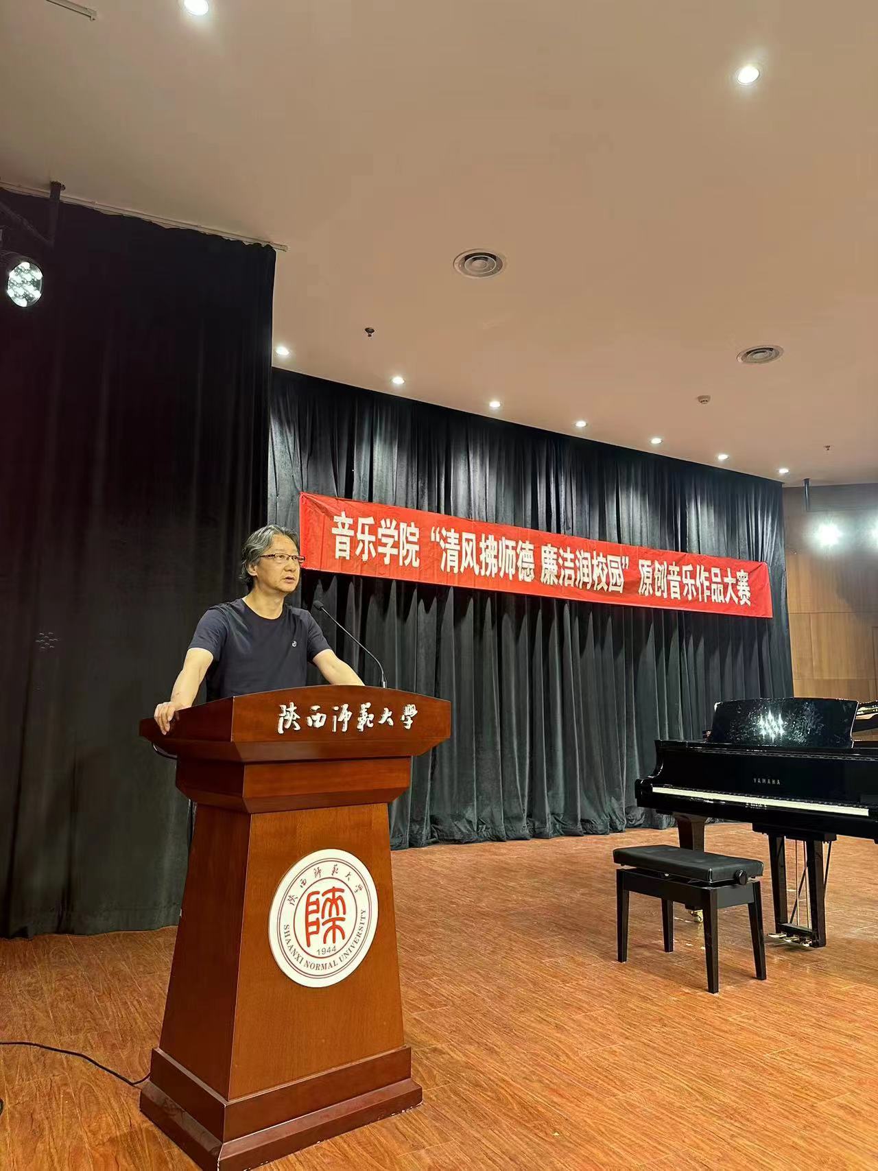 为弘扬廉洁校园主旋律,营造良好的清风校园氛围,促进廉洁校园文化建设。2023年5月17日,365英国上市网在六艺楼报告厅举办“清风拂师德,廉洁润校园”——原创音乐作品大赛,365英国上市网作曲与音乐学系张娟、王林、张智军、欧阳文思、井碧媛作为本次大赛的评委,党委副书记宋娜,研究生辅导员张仪,本科生辅导员张淼参加本次活动。