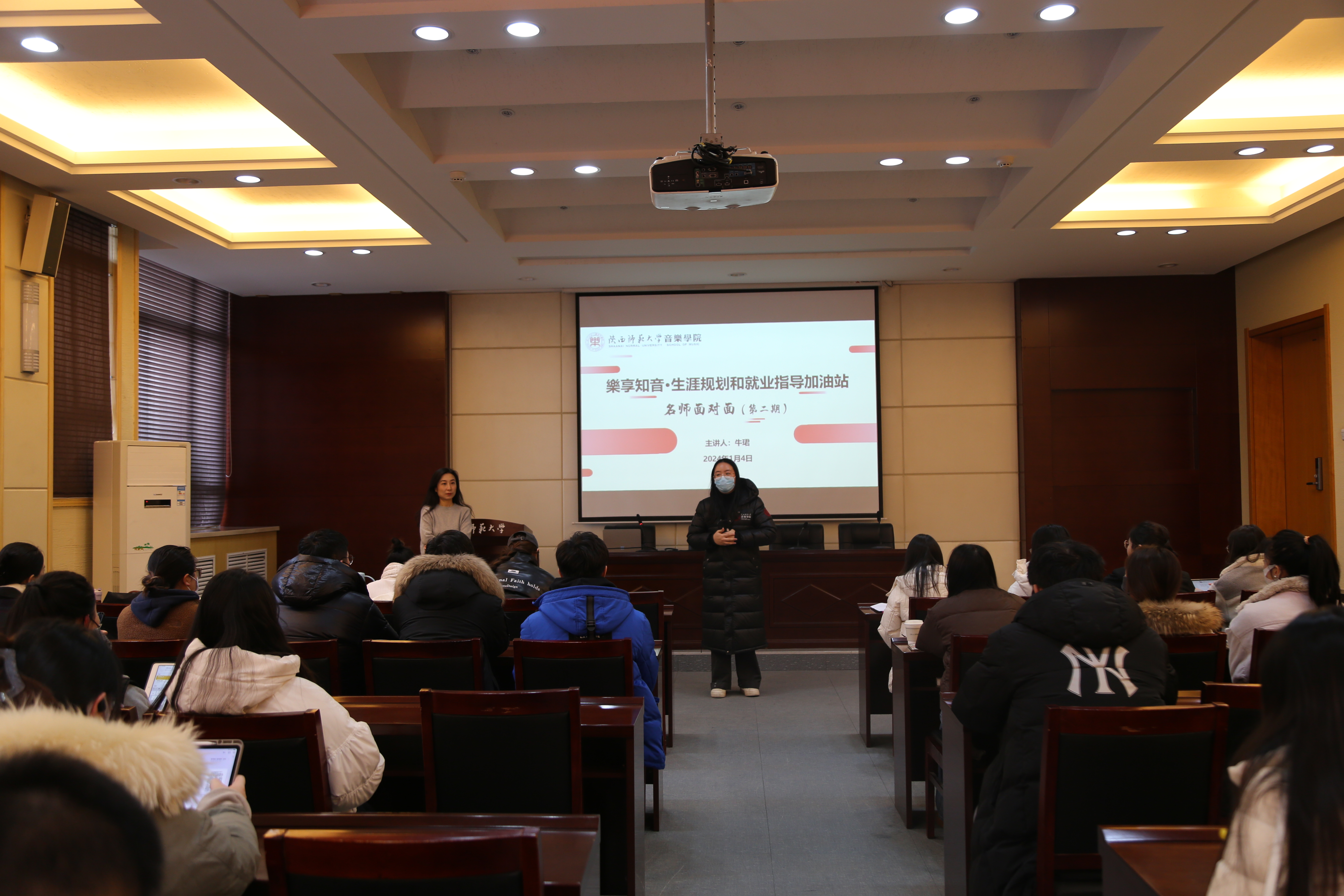 1月4日上午,365英国上市网在文汇楼一层报告厅举办面试技巧讲座,音乐教育系教师牛珺作为本次讲座的主讲人,学院党委副书记宋娜、研究生辅导员张仪、学院本科生、研究生毕业生共同参与。讲座由张仪主持。