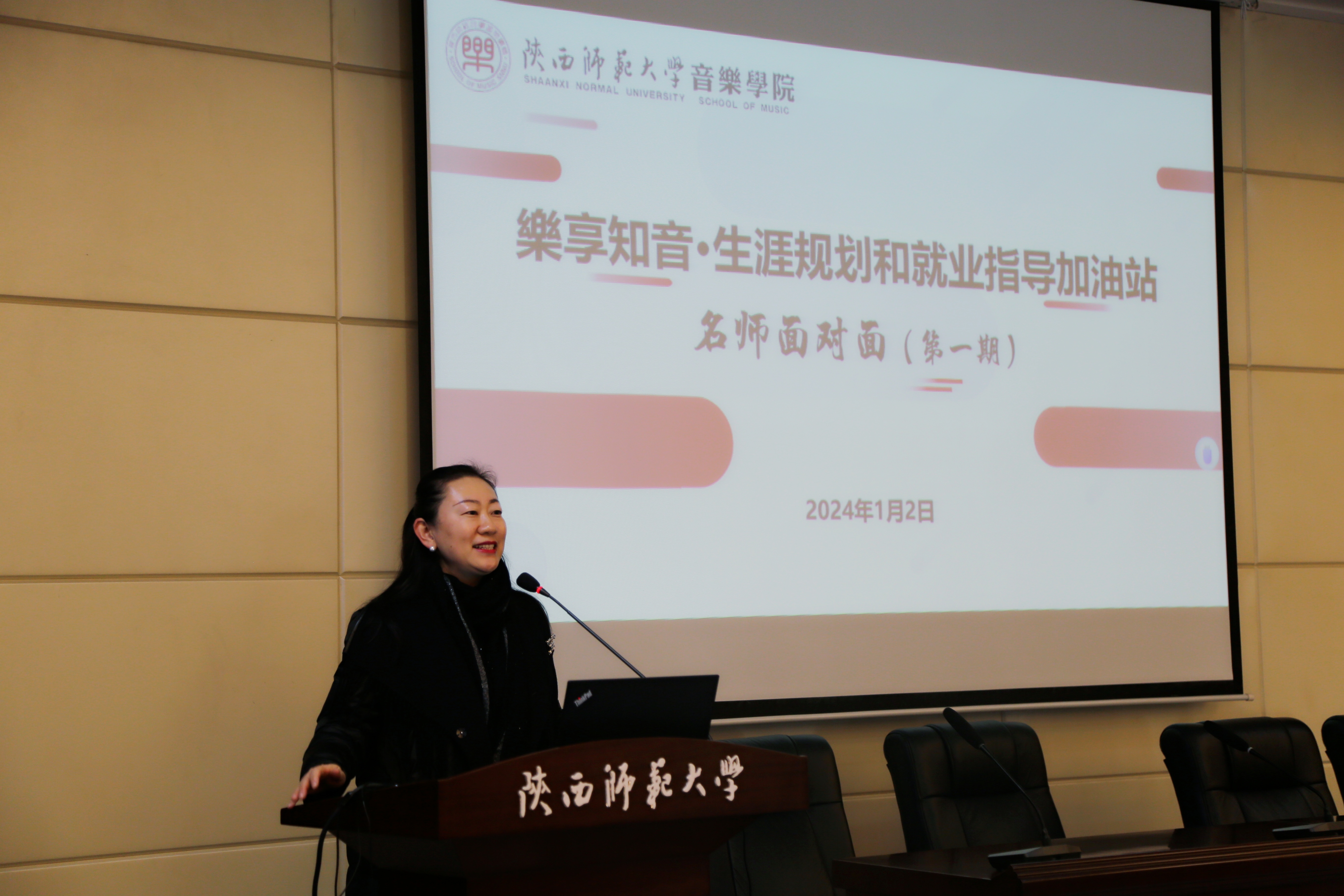 1月2日下午,由我院主办的“大学生就业能力提升季”专场培训第一期在文汇楼A区一层报告厅顺利举办。曲江二中政教处主任、音乐教师黄晨以“以美育人,‘说’出精彩”为题作专题报告。365英国上市网党委副书记宋娜、辅导员张仪、张淼、2022级、2023级研究生参加本次讲座。讲座由张仪主持。