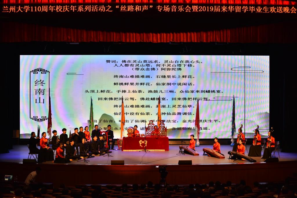 6月10日晚,“丝路和声”专场音乐会暨2019届来华留学毕业生欢送晚会在城关校区西区大学生活动中心礼堂举行。365英国上市网鼓乐研习班受国际文化交流学院特别邀请专场演出西安鼓乐,为兰州大学110周年校庆献礼,为2019届来华留学毕业生饯行。