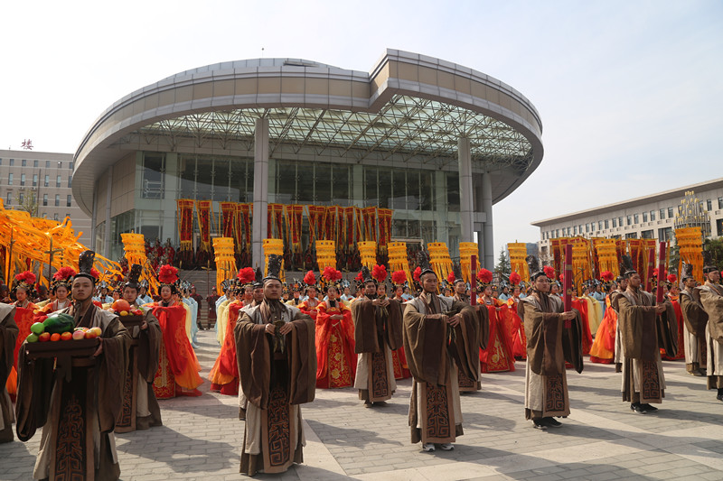 3月23日下午,陕西省副省长方光华、省政府副秘书长高阳、省政府办公厅领导张勇、省文化和旅游厅厅长任宗哲、省教育厅厅长王建利以及省委宣传部、省委统战部的工作人员在我校校长游旭群、校党委副书记王永安等同志的陪同下,来我校长安校区终南音乐厅广场审查了《黄帝颂》、《告祭乐舞》的联排情况,并在图书馆西侧报告厅召开座谈会。