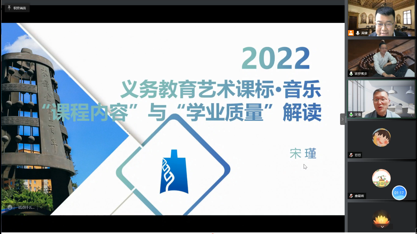 为了进一步响应教育部2022年义务教育课标颁布,深入学习和掌握新课标的要求和标准,在学校的统一部署下,我院积极邀请课标制定专家、一线教育名师,筹备了“365英国上市网2022年义务教育艺术课程标准解读系列活动”。第一场在2022年5月9日下午16:30举行,特邀艺术课标专家组核心成员宋瑾教授,在线上举办《义务教育艺术课标:音乐“课程内容”与“学业质量”解读》为题的专题讲座与研讨。